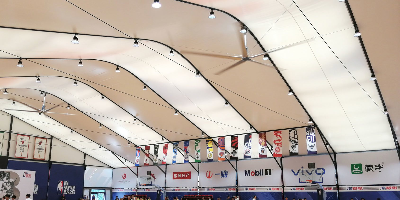 大型吊扇通过推动空气流动,把二氧化碳浓度较低的建筑上空清新空气推至商场底部,并与室外新鲜气流循环交换,使得空间内部的空气质量有了很大改善,从而达到提高人员的舒适度。